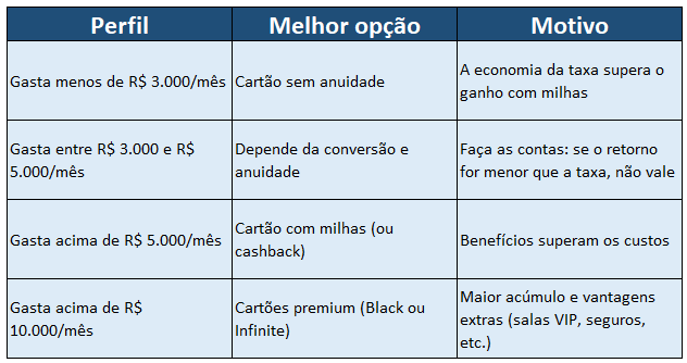 Por outro lado, se o gasto mensal fosse R$ 8.000, o retorno em milhas dobraria — e o benefício começaria a compensar.